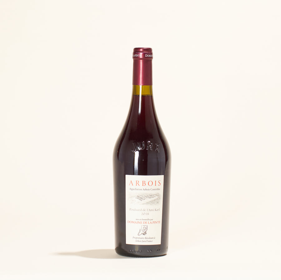 An unfiltered, Poulsard grown biodynamically and harvested by hand. The hue is a lovely garnet red, and the aromas are of red tart fruit and licorice. On the palate, it's light and fruity with silky tannins. If you're patient, you can keep it in the cellar for up to eight years!